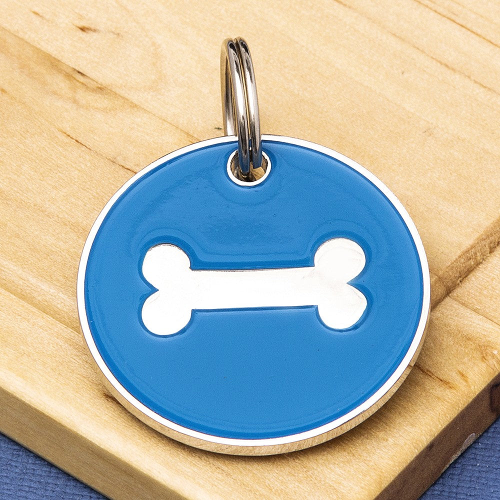 Dog Bone Identity Tag - Coloured Enamel & Engraved - Small Size (25mm wide)