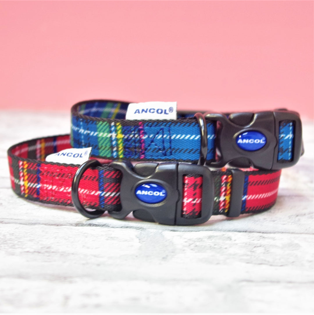 Adjustable Red & Blue Tartan Dog Collars - All Sizes