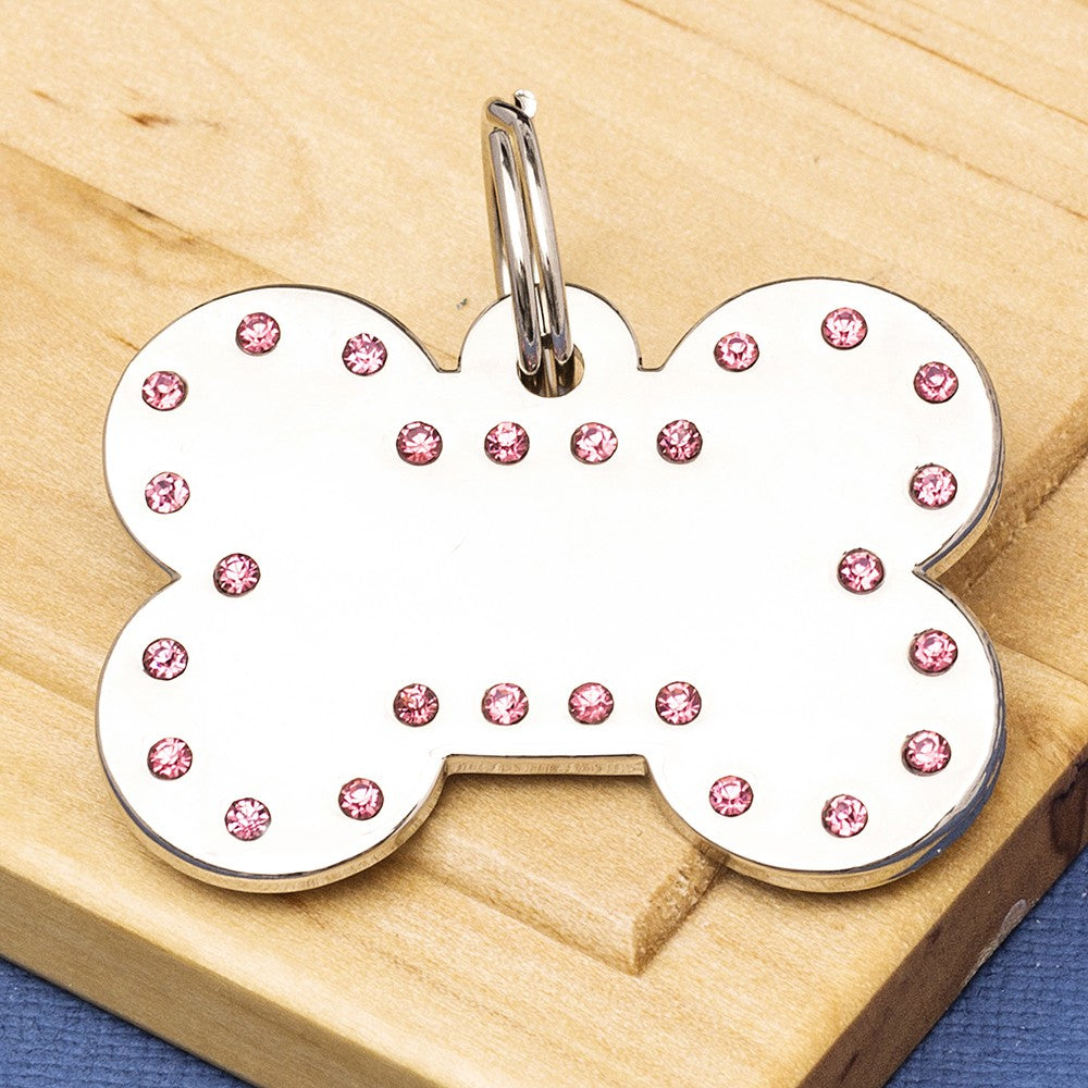 Luxury Crystal Embedded Chrome Dog Bone ID Tag - Small Size (22mm tall)