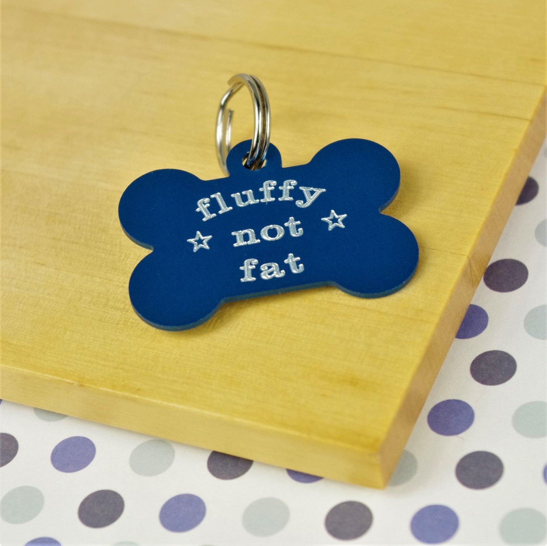 'fluffy not fat' Bone Shaped Funny Dog ID Tag – Choice Of Size & Colour