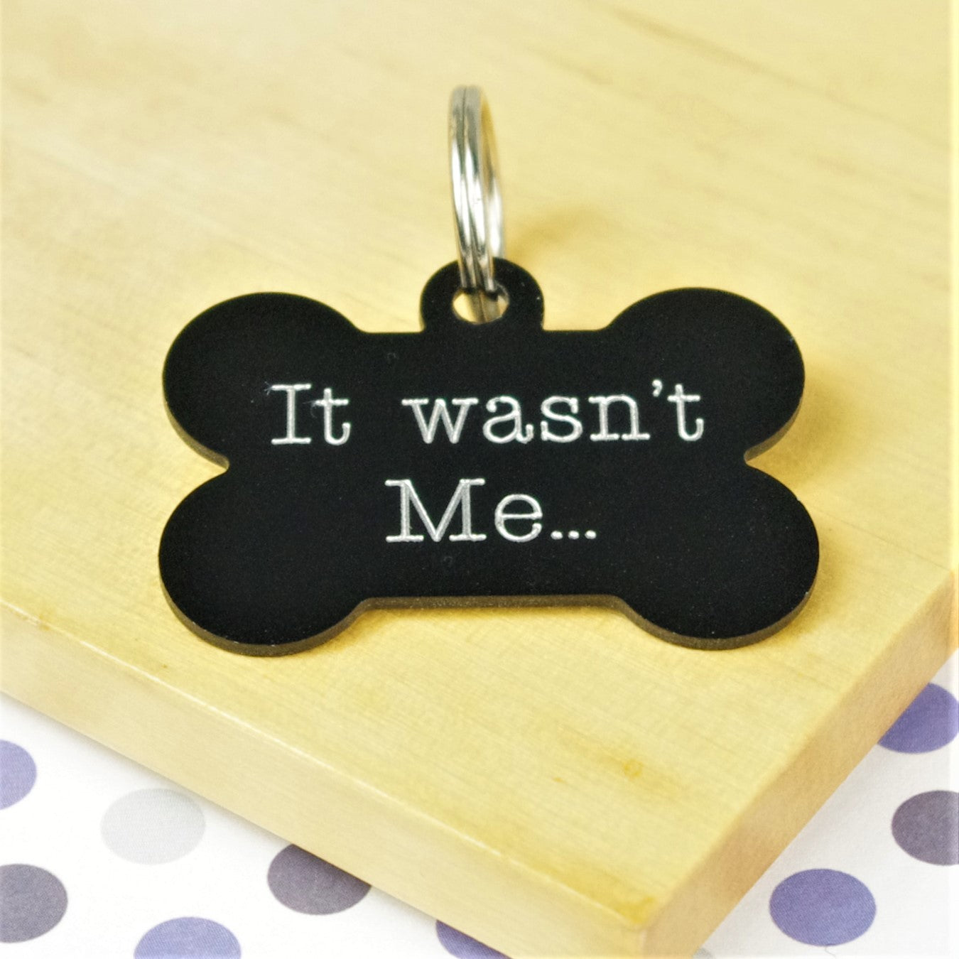 'It Wasn't Me...' Bone Shaped Funny Dog ID Tag – Choice Of Size & Colour